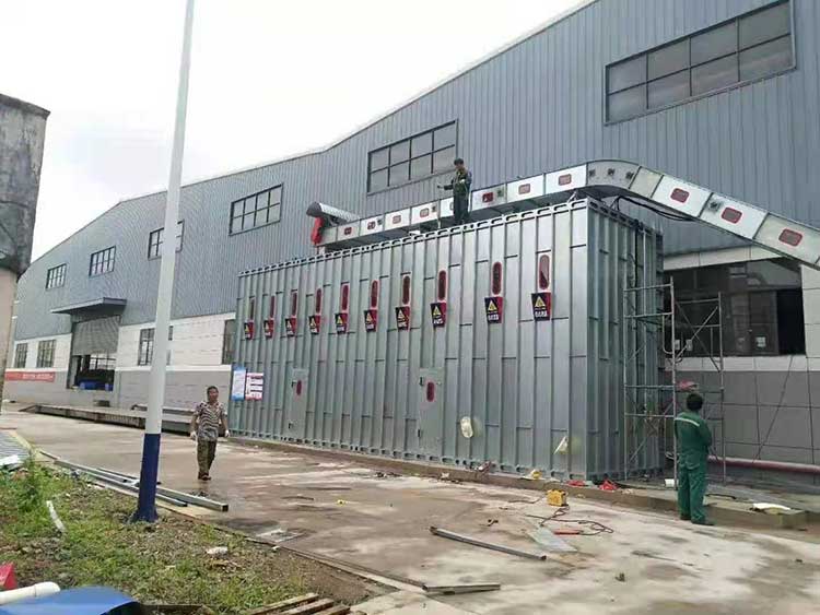 5、火情檢測盒滅火系統(tǒng):設(shè)備出風(fēng)口設(shè)置火情檢測探頭用于火情檢測。滅火噴淋裝置安裝于主風(fēng)筒內(nèi),用于滅火,以有效保護系統(tǒng)的運行安全。探測器探測到火情時,立即報警,關(guān)閉主機,同時開啟消防泵進行噴淋滅火。