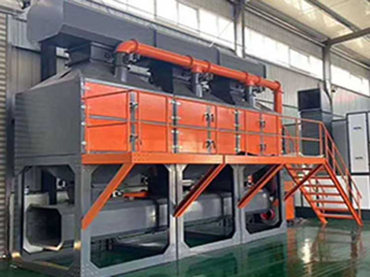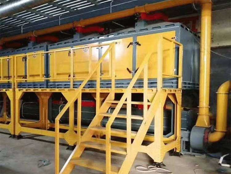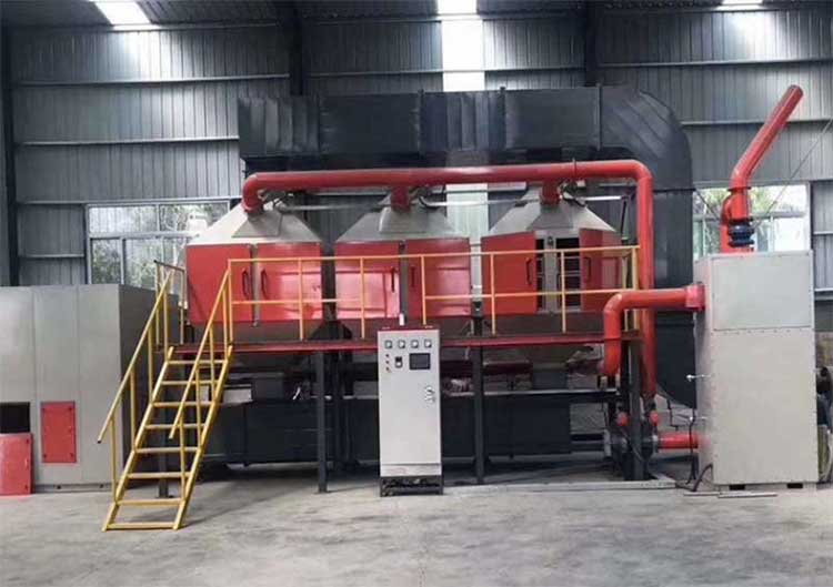 工藝上,我們采用引入新鮮空氣與催化燃燒后熱氣體熱交換后進(jìn)行脫附,易于控制,不會產(chǎn)生高溫報(bào)警或低溫脫附不充分的情況,即安全也節(jié)能。同行業(yè)多采用催化燃燒后無氧氣體混合冷空氣進(jìn)行脫附,因催化燃燒后的溫度與脫附出來的氣體濃度有關(guān),變化很快,不可控制,導(dǎo)致脫附溫度時(shí)高時(shí)低,從而造成脫附效率不高,***后整體的治理效果不佳。 存放催化劑,廢氣進(jìn)行催化燃燒的位置。催化燃燒是借助催化劑在低溫下300℃以下, 實(shí)現(xiàn)對有機(jī)物的完全氧化,因此,能耗少,操作簡便,安全,凈化效率高,在有機(jī)廢氣特別是回收價(jià)值不大的有機(jī)廢氣凈化方面,比如化工,噴漆、絕緣材料、漆包線、涂料生產(chǎn)等行業(yè)應(yīng)用較廣。