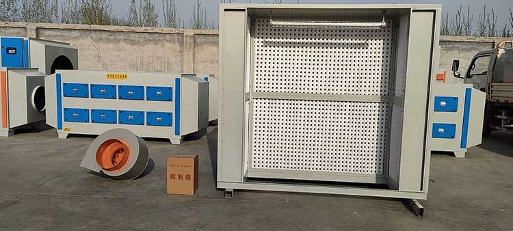 噴漆時所產(chǎn)生的漆霧顆粒,在風(fēng)機的吸力下,漆霧顆粒首先通過一級過濾(漆霧過濾棉、V型過濾紙、迷宮紙盒),大部分漆霧顆粒被截留在吸附介質(zhì)上面,剩下部分細(xì)小顆粒經(jīng)過纖維過濾棉進行二次過濾,經(jīng)過二級過濾后,漆霧凈化效果達(dá)90%以上,處理后的廢氣通過廢氣處理設(shè)備(活性炭吸附箱、光氧催化、催化燃燒裝置)凈化后達(dá)到高空排放標(biāo)準(zhǔn)。