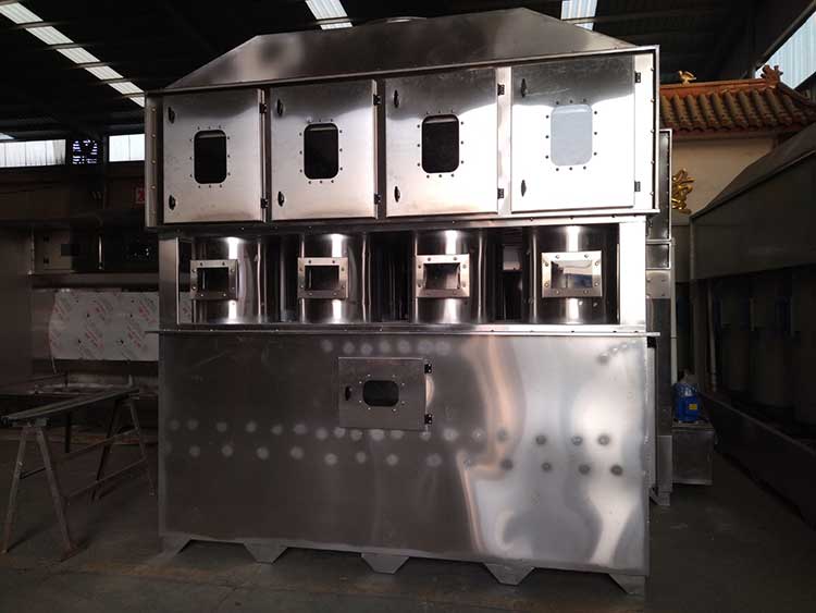 三、旋流塔塔內(nèi)設計多套旋流裝置,經(jīng)過初級凈化的煙氣旋轉(zhuǎn)上升,由于旋流裝置設計合理,旋流氣動裝置具有導向和接力作用,利用煙氣自身的動能產(chǎn)生氣動旋流,氣液兩相充分接觸,進行傳質(zhì)反應,煙氣在塔內(nèi)經(jīng)過多級旋流裝置的脫硫,可確保脫硫效率達到技術(shù)要求。佑泰公司旋流板的設計、安裝經(jīng)驗豐富,擁有大量的工程經(jīng)驗。針對不同煙氣工況的具體條件進行個性化設計,保證了對旋流板葉片尺寸、旋轉(zhuǎn)角度、仰角、脫硫效率、以及阻力均有嚴格的控制。