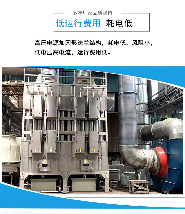 5.低運行費用:高壓電源加圓形法蘭結(jié)構(gòu),耗電低,風(fēng)阻小,低電壓高電流,運行費用低。