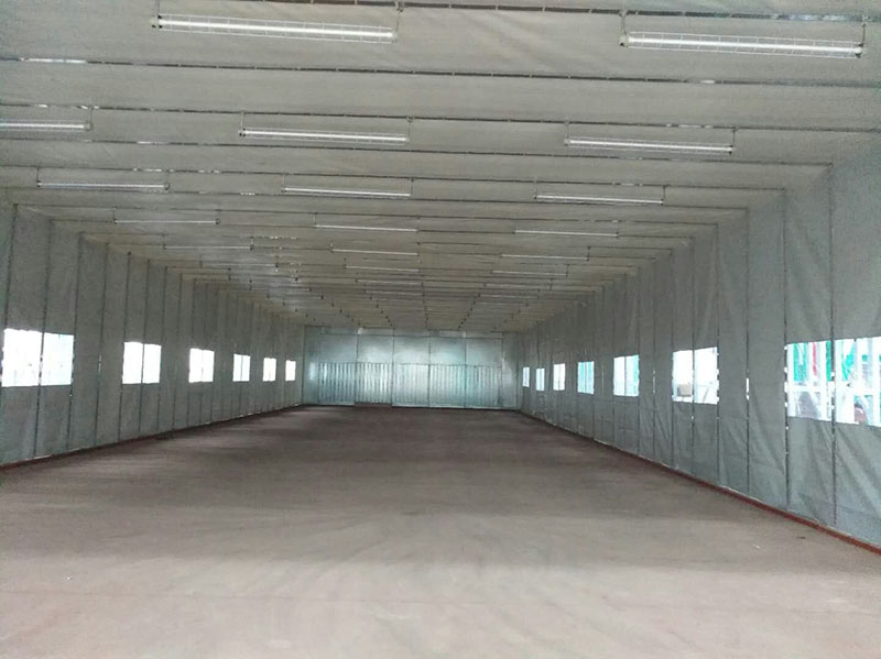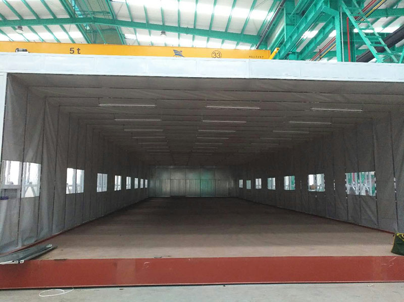 移動(dòng)伸縮房主要由軌道,移動(dòng)框架室體,房體密封布,電控箱等組成。移動(dòng)伸縮房的長(zhǎng)寬高根據(jù)實(shí)際需求定制,伸縮房密封布防水,抗拉,阻燃。如果應(yīng)用在易爆環(huán)境電機(jī)及LED燈均具有防爆性能。
