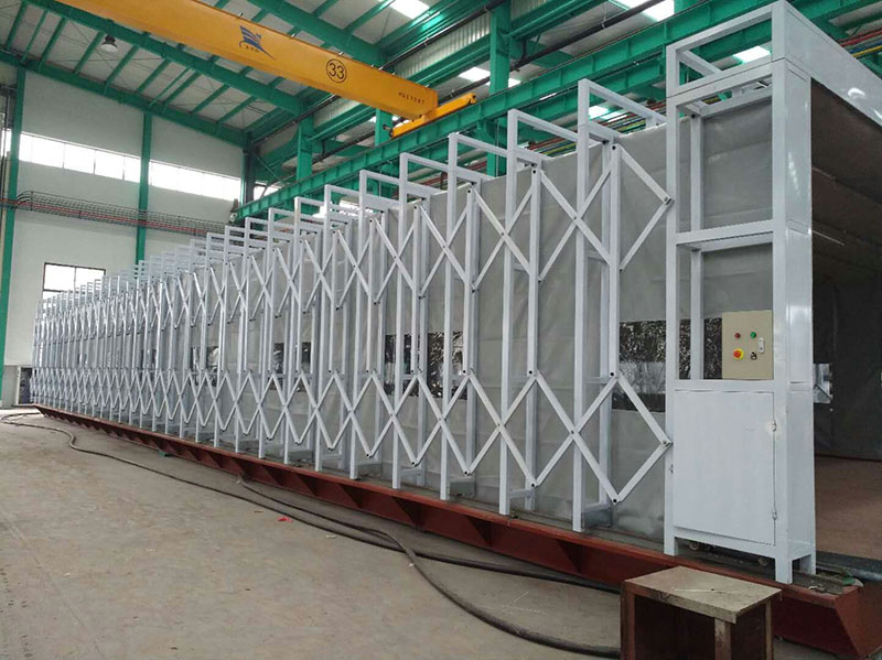 ***種是移動(dòng)伸縮式噴漆房,伸縮房一端固定,固定端可配置粉塵收集回收設(shè)備或者漆霧收集處理設(shè)備,另一端伸縮,方便工件來(lái)回運(yùn)轉(zhuǎn)。工件準(zhǔn)備時(shí),伸縮房收縮;工件到達(dá)伸縮房?jī)?nèi)***區(qū)域,伸縮房伸展;噴漆工作完成后,收縮房體,工件移出。此種伸縮房是現(xiàn)在使用***多的伸縮房,其長(zhǎng)寬高根據(jù)企業(yè)的實(shí)際情況定制。