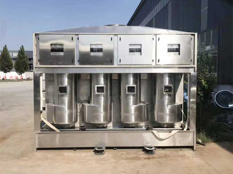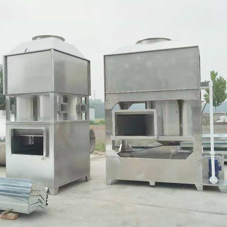 旋流塔內(nèi)安裝有多個“環(huán)形旋流筒”和高效除霧板。旋流桶內(nèi)裝有實心填料球,***上層的除霧板用于凈化水霧,達到脫水霧的目的,含塵氣體在塔板上旋轉上升,并與塔頂進入的液體旋流接觸,完成了除塵任務;廢氣中的大顆粒被離心力作用沉降到水池中,***后由人工撈出清洗機殼,使氣體被凈化,達標排放,同時氣旋塔內(nèi)的水可持續(xù)循環(huán)。