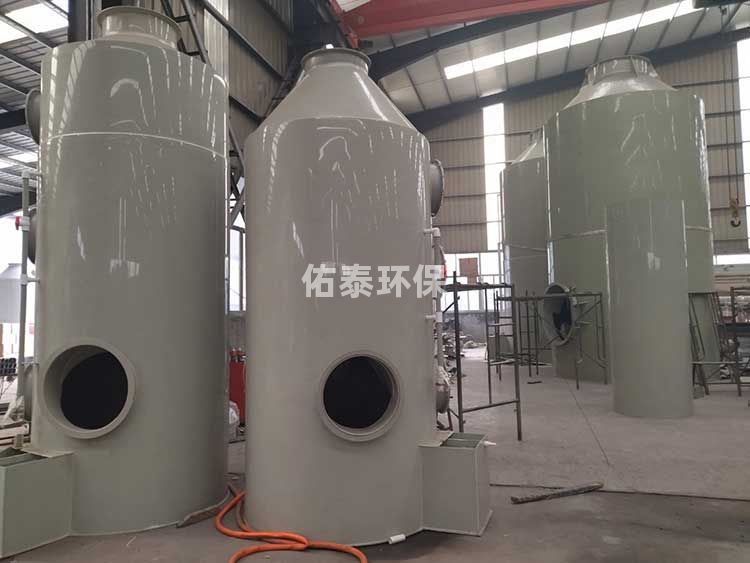 前言:噴淋塔有多種叫法,比如廢氣塔、酸霧塔、凈化塔、洗滌塔、吸收塔、吸附塔、酸霧噴淋塔等名稱(chēng),它是常見(jiàn)的廢氣處理設(shè)備,制作材料常見(jiàn)的是pp板,碳鋼,不銹鋼,玻璃鋼等材質(zhì)做成,噴淋塔工作時(shí)廢氣由風(fēng)管引入凈化塔,經(jīng)過(guò)填料層,廢氣與吸收液進(jìn)液兩相充分接回觸吸收中和反應(yīng),廢氣經(jīng)過(guò)凈化后,再經(jīng)除霧板脫水除霧后由風(fēng)機(jī)排入大氣。吸收液在塔底經(jīng)水泵增壓后在塔頂噴淋而下,回流至塔底循環(huán)使用。凈化后的廢氣直接排放到大氣中或者進(jìn)入下一級(jí)廢氣處理設(shè)備。噴淋塔由塔體、噴淋層、填料層、除霧層、循環(huán)水箱、循環(huán)水泵等部分組成,佑泰環(huán)保小編為介紹一下噴淋塔的每個(gè)組成部分。